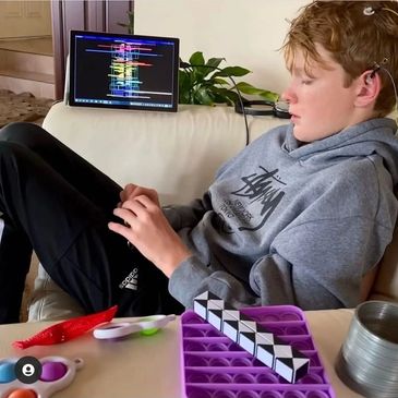 Durante una sessione di NeurOptimal Dynamical Neurofeedback® https://neuroptimal.com/, gli elettrodi vengono posizionati sulla testa del paziente per monitorare l'attività cerebrale. Il sistema rileva e registra i segnali elettrici emessi dal cervello, 256 volte al secondo, mentre il paziente partecipa a attività rilassanti, come ascoltar